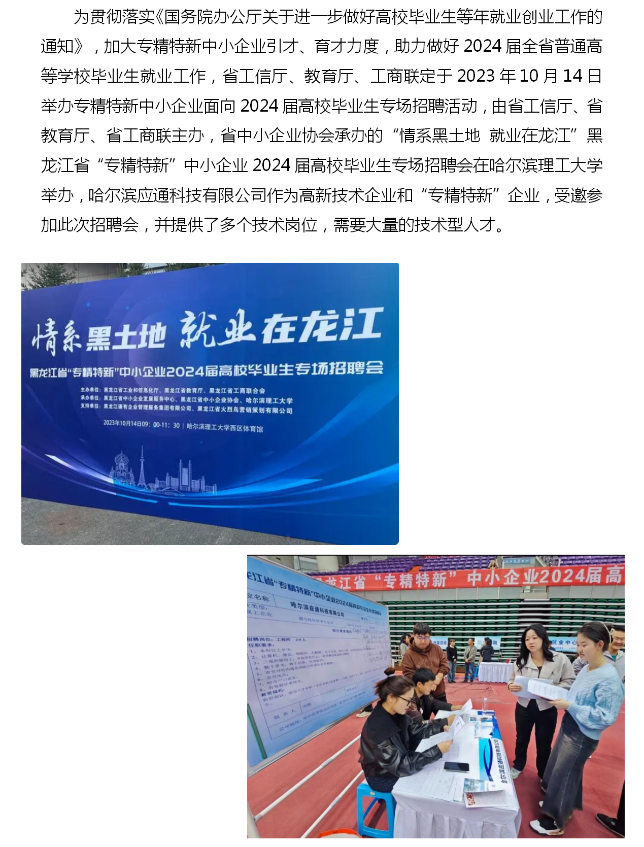 情系黑土地  就業(yè)在龍江 黑龍江省“專精特新”中小企業(yè)2024屆高校畢業(yè)生專場招聘會